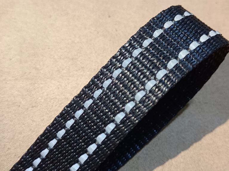 We have made a special structure of webbing with reflective tape, which can lock the reflective tape in the webbing and will not fall off even if it is broken by a needle.
